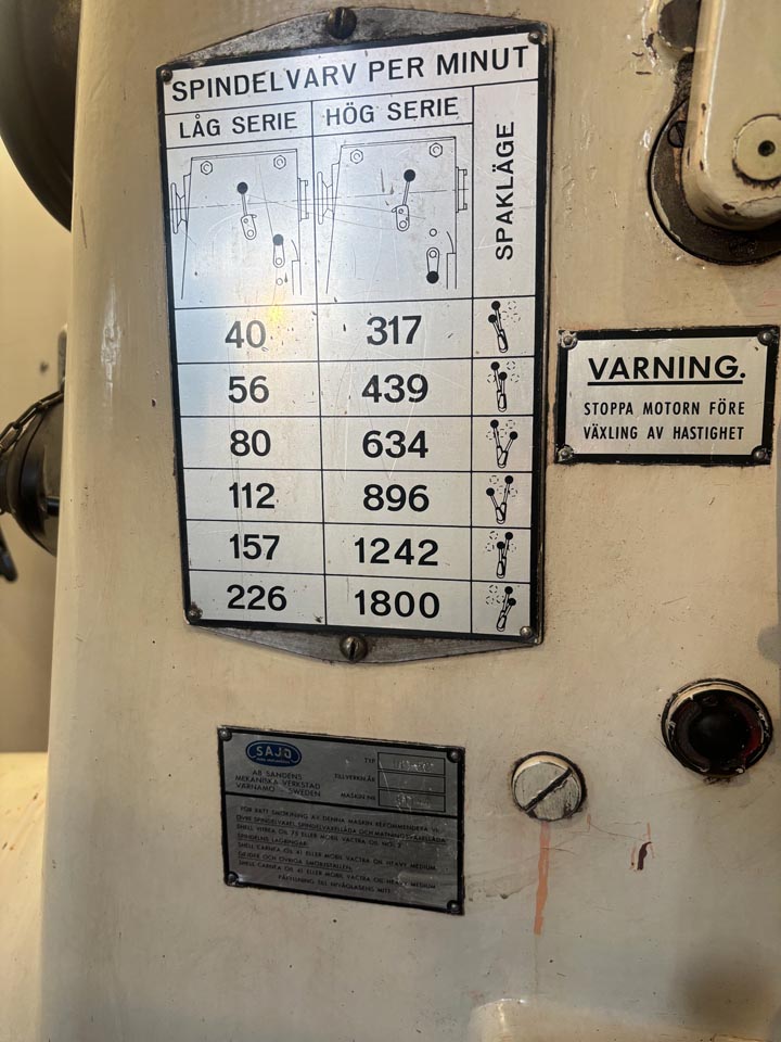 Spindle speed: 40-1800 rpm (12 pcs)