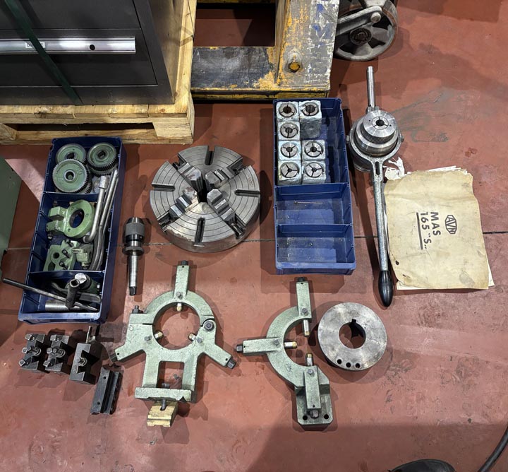 1-axlig digital Sony 3-backschuck Ø160 mm backskiva Ø280 mm hylschuck med 8 st hylsor 10-12-15-16-18-20-22-25 mm fast stödlager medlöpande stödlager centrumfäste Bergström 4 st sidhållare drevsats borrchuck med dorn lampa m.m.Specifikation