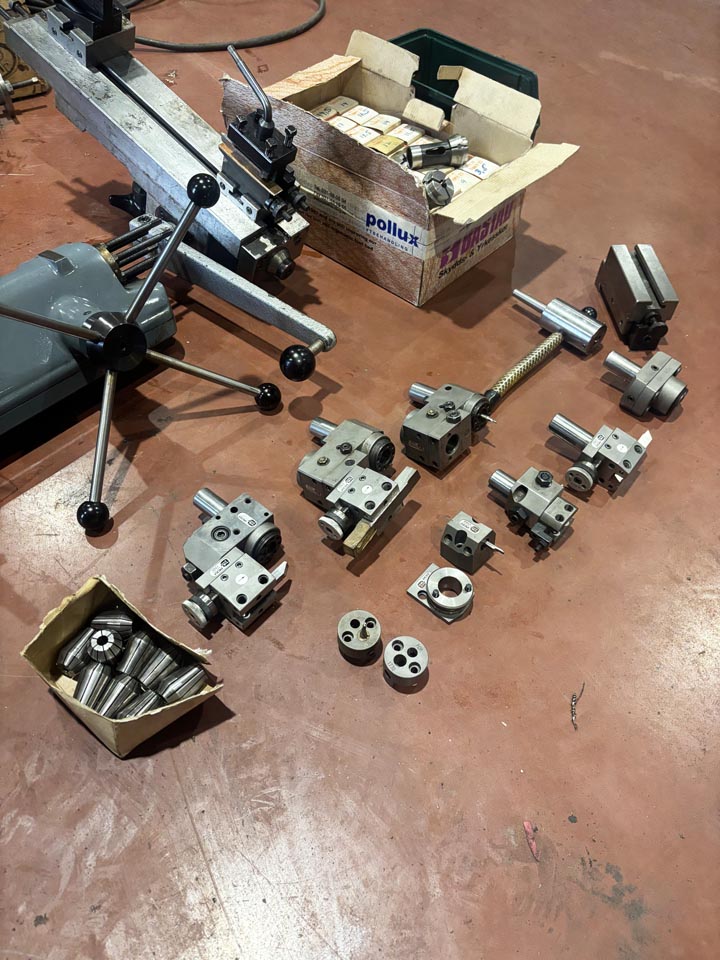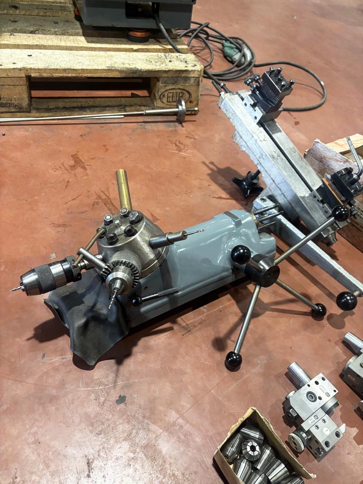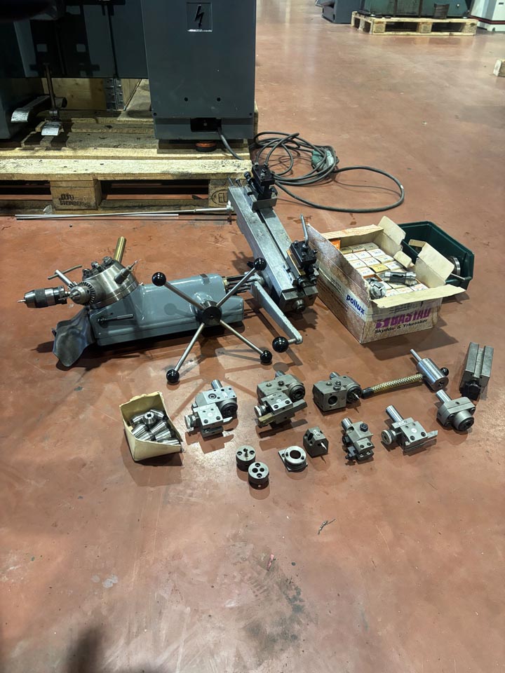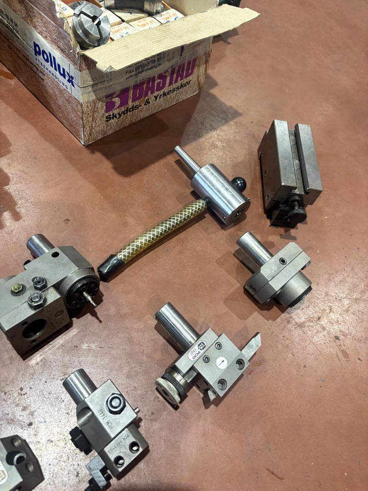 Dubbdockatopp-/tvärslidRevolver med 6 st verktygsplatserspakslid med 2 st uppspänningsblockhylschuck med 43 st spännhylsor 1-1,5-2-2,5-3-3,5-4-4,5-5-5,5-6-6,5-7-7,5-8-8-8,5-9-9,5-10-10,5-11-11,5-12-12,5-13-13,5-14-14,5-15-15,5-16-16,5-17-17,5-18-18,5-19-19,5-20 mm + 4 st för 6-kant 4-7-8-10 mmcentrumfästesidohållare2 st borrchuckar 5 st verktygshållare för revolver (PCM151PCM1421PCM1701PCM1440PCM1050...)11 st spänhylsor 2,5-11 mm (passar PCM hållare)kylvätskeutrustning m.m.