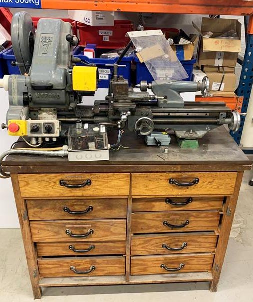 Bänksvarv Myford Super 7 med tillbehör