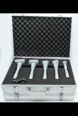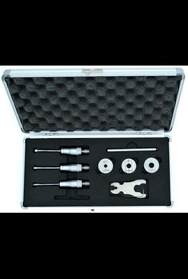 Sats med trepunkts innermikrometrar för invändig mätning av bottenhål. Levereras förpackade i förvaringslåda. Kontrollringar ingår.